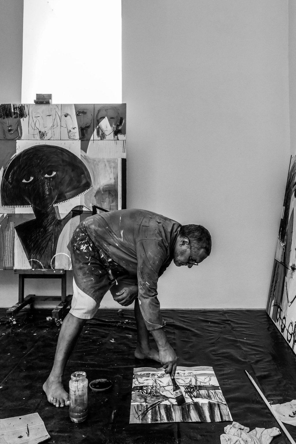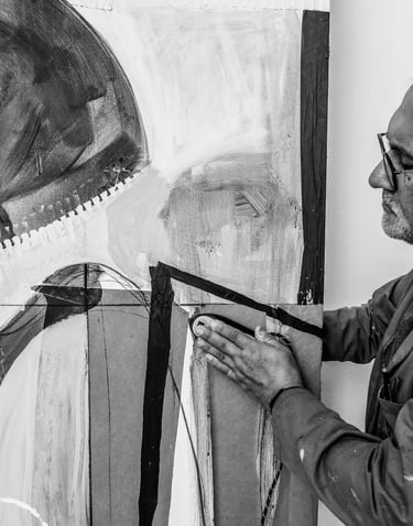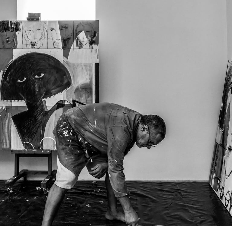 The work of Júlio Cunha reveals a trajectory shaped by the balance between intuition and technical investigation, where constant experimentation and eclecticism are central. From his training at the Fine Arts School of Porto to his master’s degree in Coimbra, Cunha developed a hybrid language that merges painting, drawing, printmaking, collage, and assemblage in dialogue with material and gesture. Influenced by artists such as Pablo Picasso, Antoni Tàpies, Robert Rauschenberg, and Paula Rego, his work oscillates between neo-figuration and material abstraction, exploring the process of “destruction-creation” and the body as a site of artistic expression. The female figure emerges as a recurring theme, reflecting social tensions and contemporary crises, while the titles of his works act as poetic clues for the viewer. Cunha’s art is alive, performative, and sensitive, capable of transforming everyday life and matter into profound aesthetic experiences.